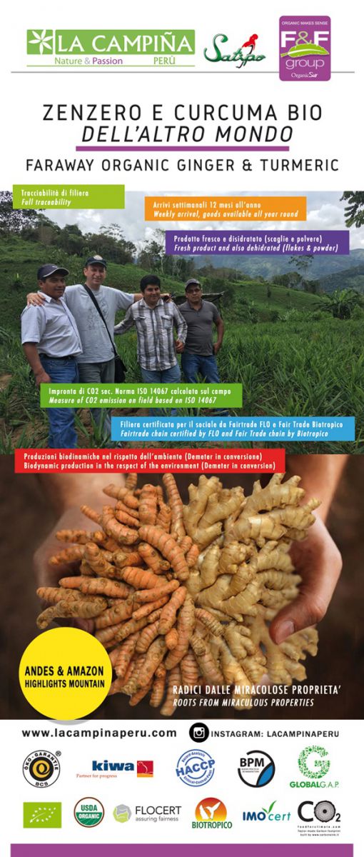 Siamo lieti di annunciare che la nostra filiera di zenzero e curcuma biologica peruviana de La Campiña, aggiunge oggi una nuova certificazione sociale (qui la certificazione: Doc1, Doc2) con l’intento di garantire ulteriormente i contenuti di profonda socialità che animano questi piccoli produttori dalla spiccata caparbietà e dalla voglia di progredire.